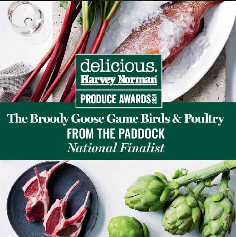 This image shows a raw, whole Pekin duck from Broody Goose Farm in Sedan, South Australia. Grown slowly on open pasture without chemicals or hormones, each bird is hand-processed, gently handled, and frozen at peak quality. These ducks are ideal for traditional roasting, confit, or Asian-inspired dishes. Raised with care by Bill and Lucy Kruger on their award-winning family farm.
