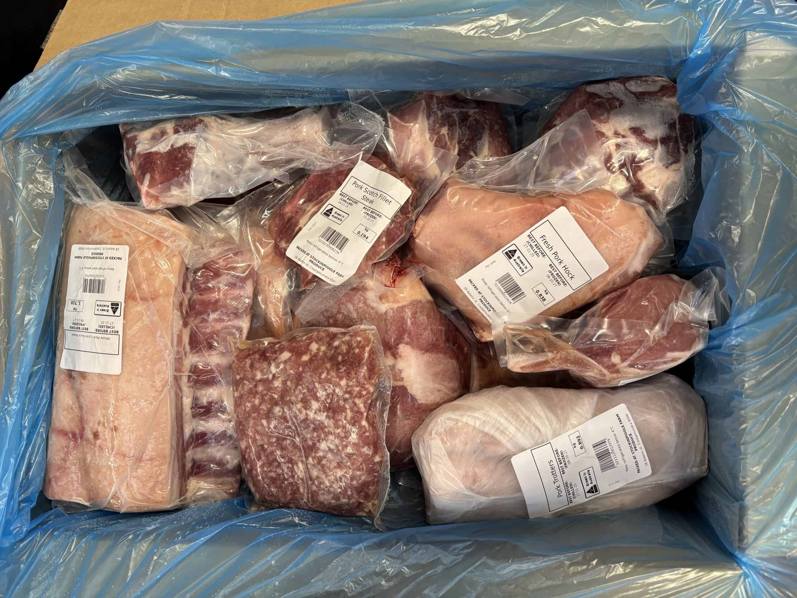 Order Now: Make your selection below and pay your deposit. Once pigs are ready for market, we’ll confirm final contents, weight, delivery location, and invoice the balance. Pork is supplied blast frozen after processing. May 2026